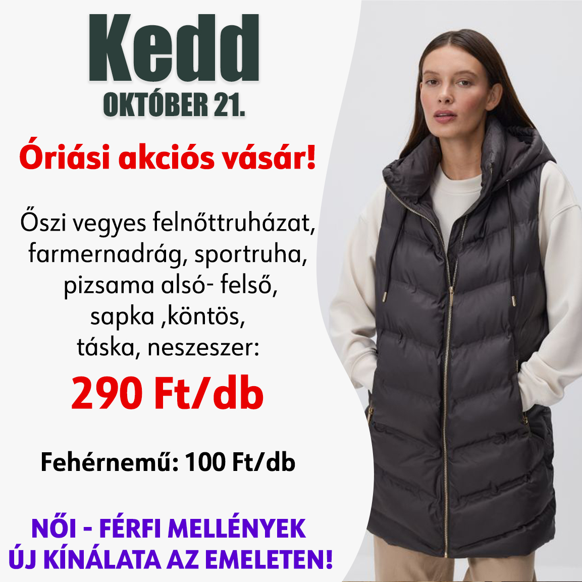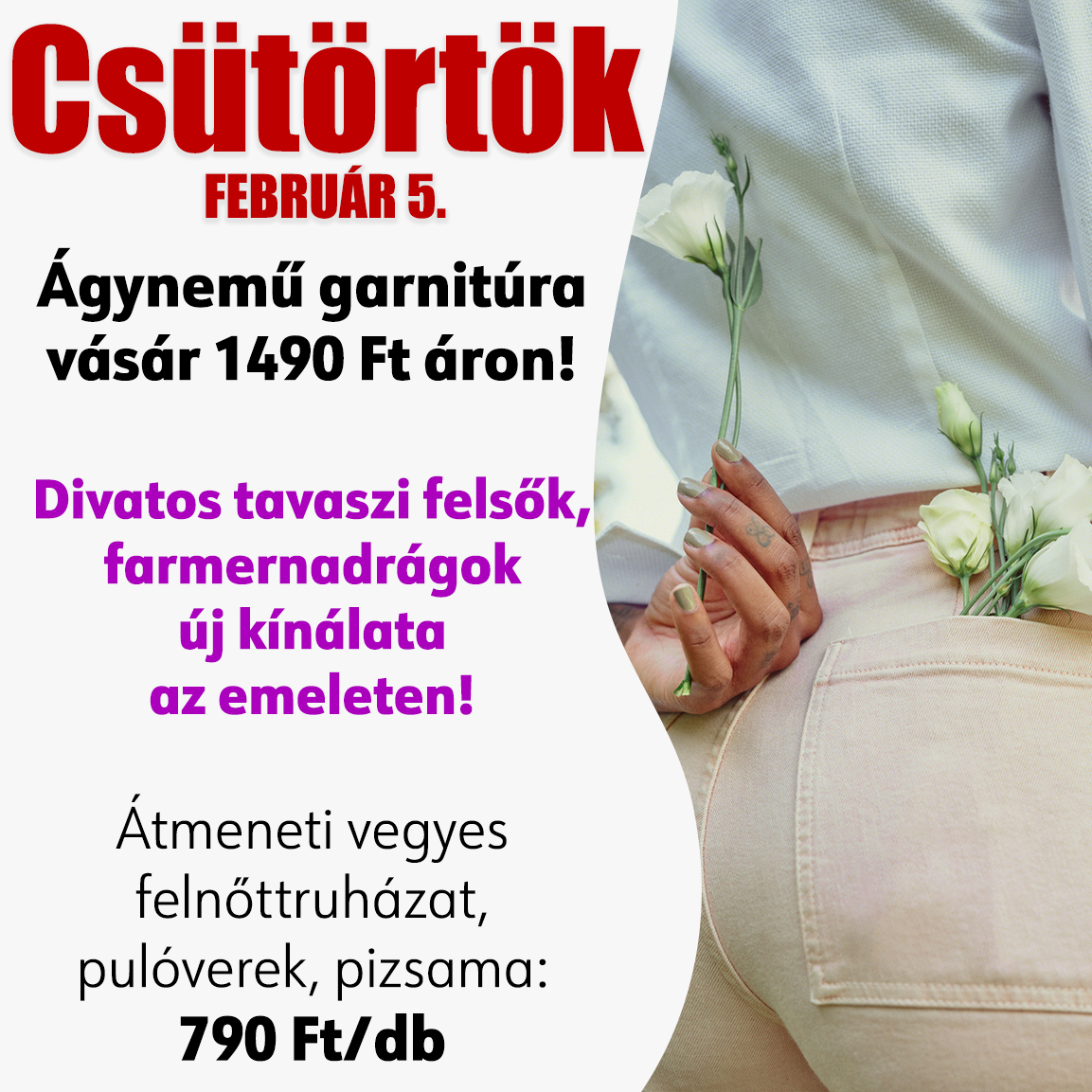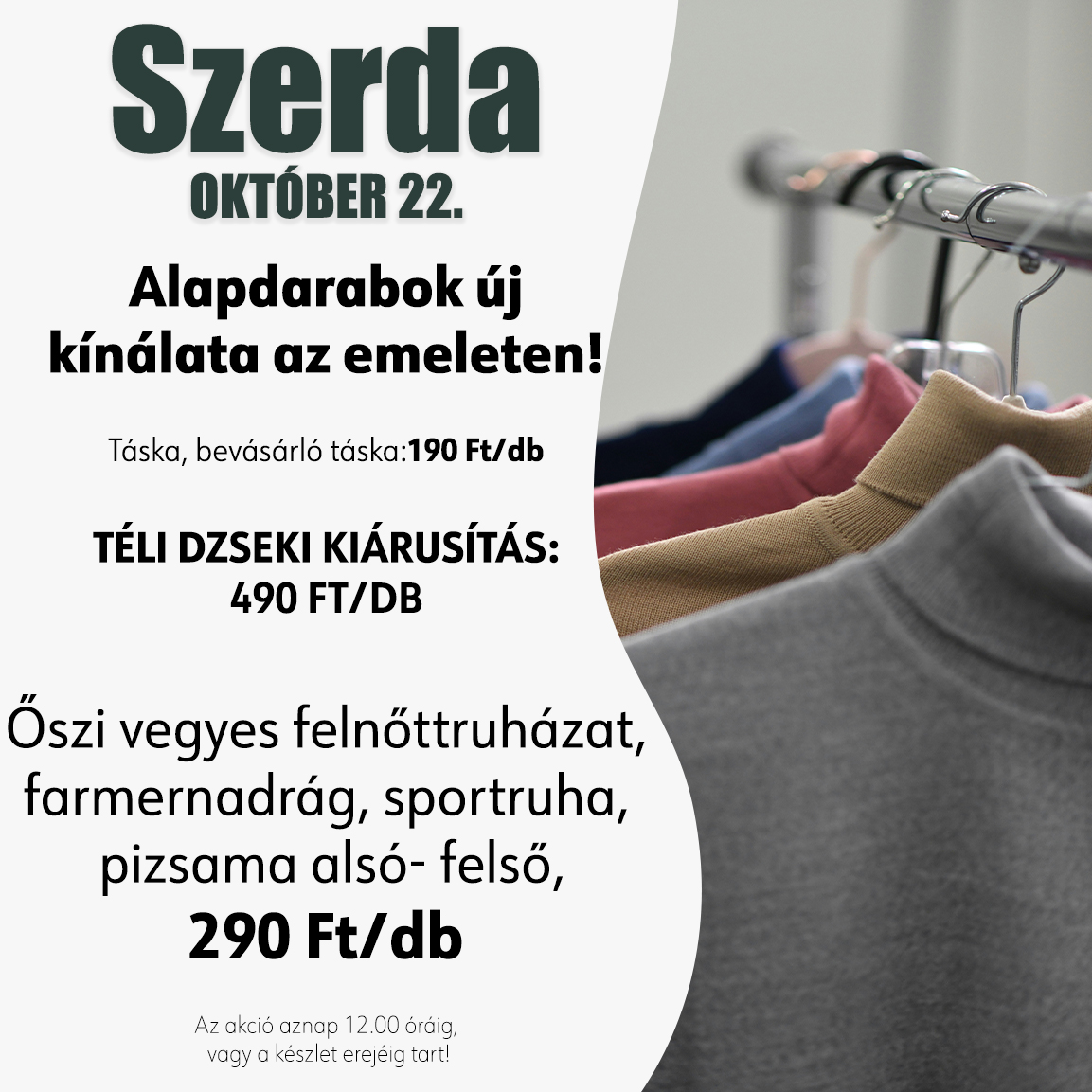 Az emeleten található áruházunk Divat Bazár részlege, ahonnan nincs üres kézzel távozó ember.