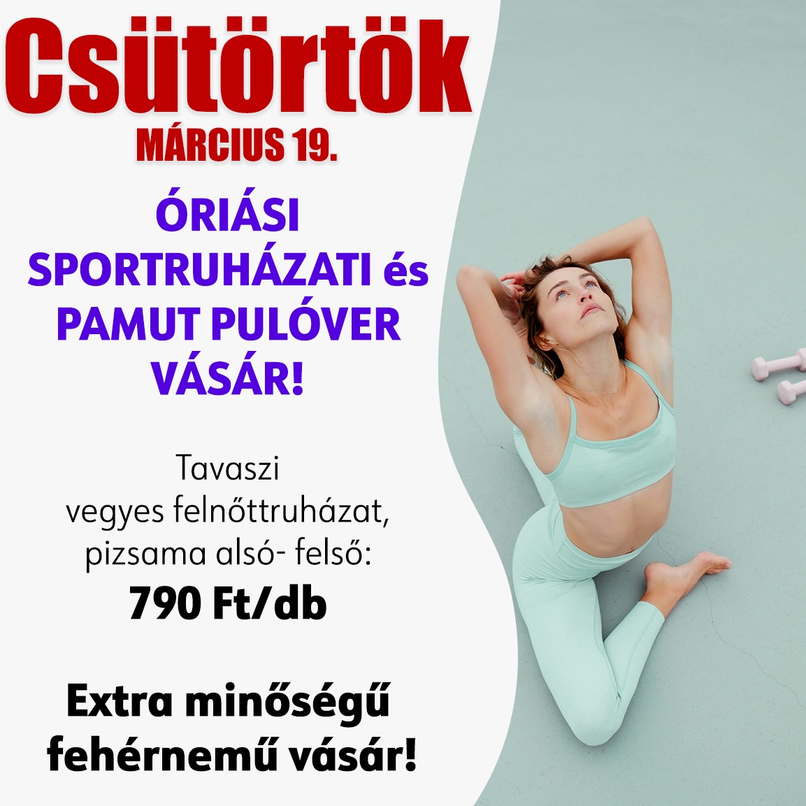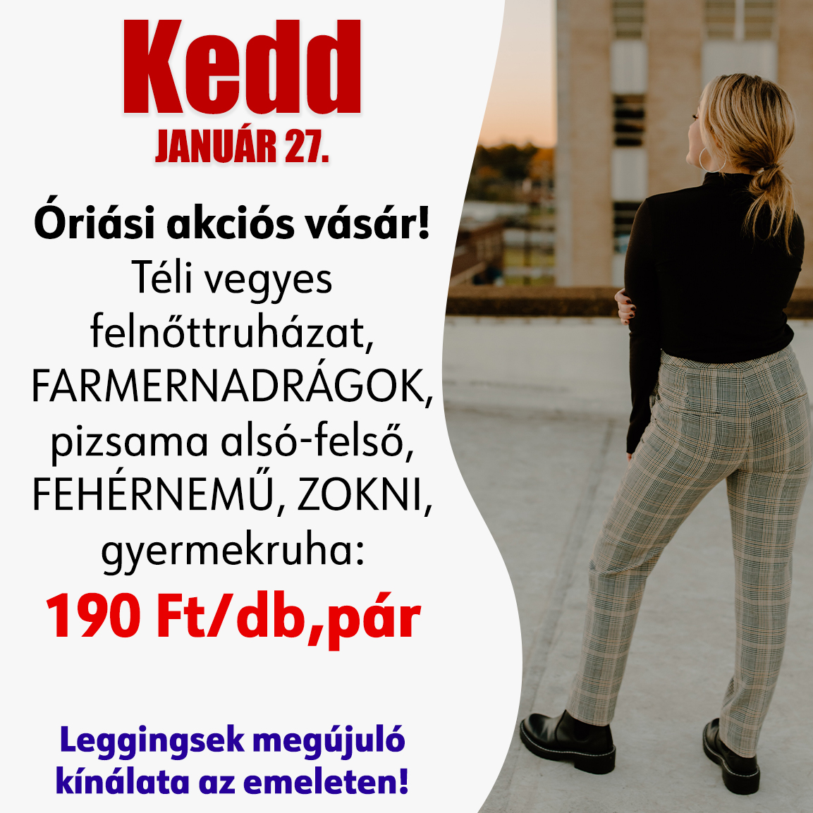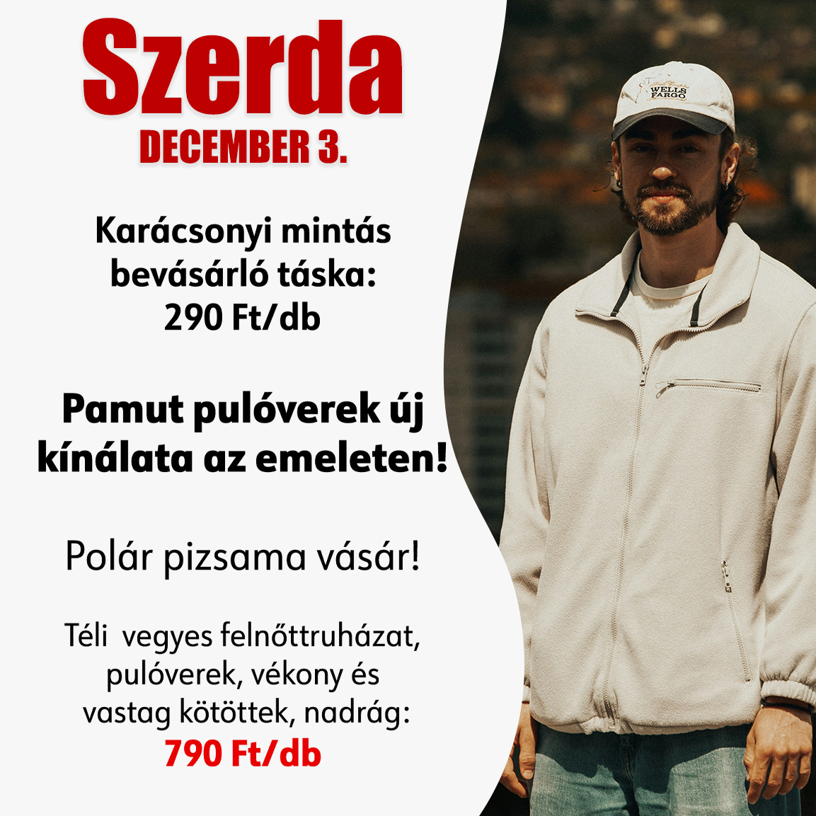 Az emeleten található áruházunk Divat Bazár részlege, ahonnan nincs üres kézzel távozó ember.