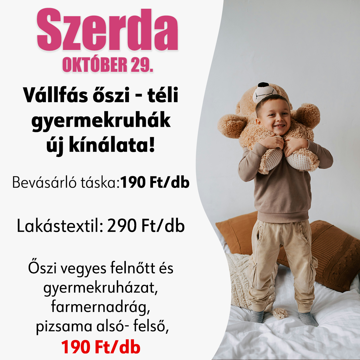 2009. március 11-én nyitottuk meg kapuinkat a Jákum út 1. alatt. Angliából, Hollandiából és Németországból importált, szezonális, válogatott árut kedvező áron kínálunk vásárlóinknak. Nálunk a márkás és egyedi ruhadarabok minden korosztály számára megtalálhatók.
